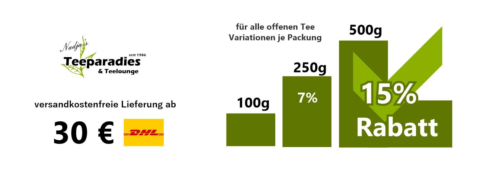Wir haben keinen fertig abgefüllten Lagerbestand der offenen Teesorten. Alle offenen bestellten Tees werden für jede Bestellung frisch in mehrlagige und aromaschonende Päckchen verpackt. Mit unserer reduzierten Auswahl an ca. 400 Tee Sorten verkürzen wir die Lagerzeit der eineinzelnen Tee Sorten. Schmecken Sie die Frische.