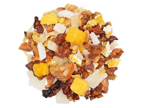 Die süße Aprikose verwöhnt den Gaumen, während die Yuzu mit ihrem intensiven Zitrusgeschmack für eine belebende Frische sorgt. Abgerundet wird diese harmonische Komposition durch das sanft-cremige Aroma von Aloe Vera. Gemeinsam kreieren sie einen Früchtetee, der an den Geschmack von süßem Kompott erinnert und die Leichtigkeit sowie den Zauber des Sommers in jeder Tasse einfängt – lebendig, fruchtig und voller Lebensfreude.