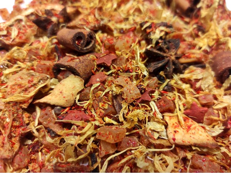 Aromatisierte Früchteteemischung mit Mango-Marzipan-Geschmack.